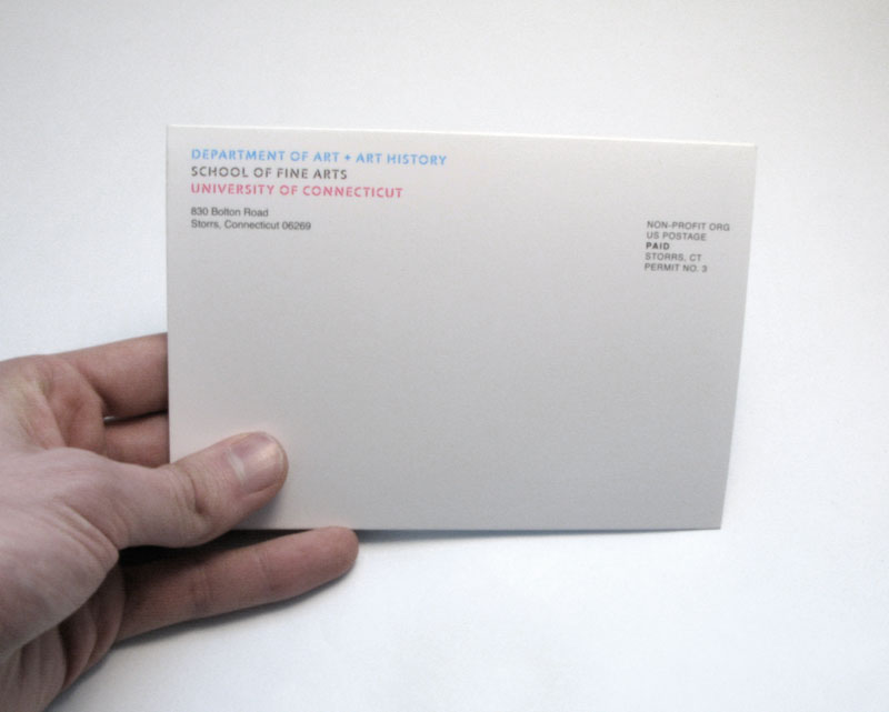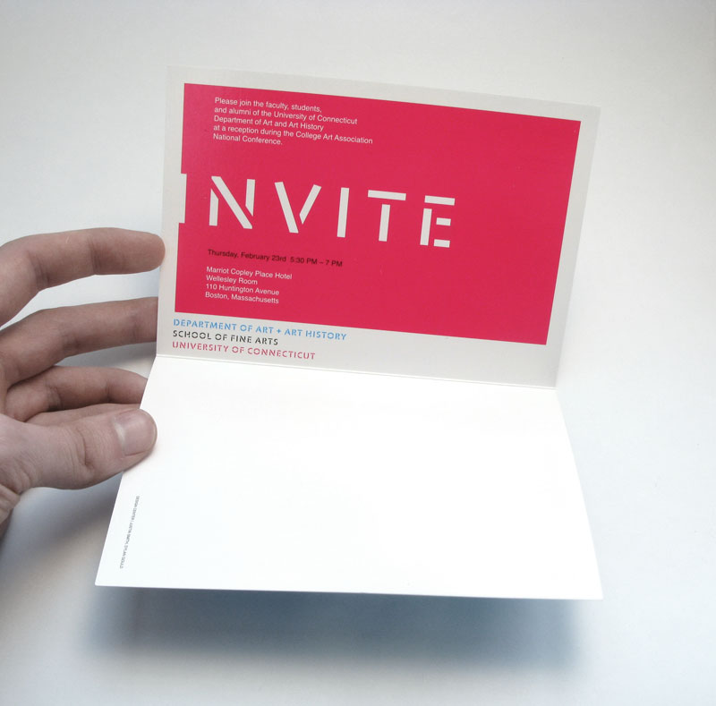 An invitation created for the University of Connecticut School of Fine Arts, for a reception held at the College Art Association National Conference.