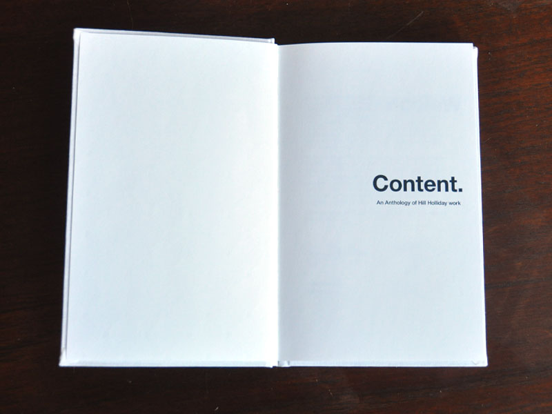 An anthology of Hill Holliday work created for the content team. I developed the look and feel for the book and completed design within an incredibly tight schedule (3 days).
