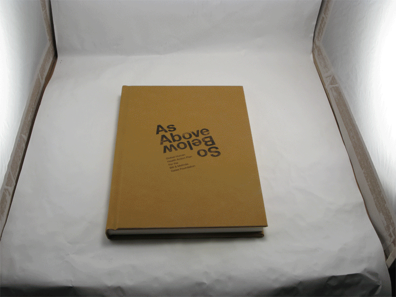 A book designed for the Bill and Melinda Gates Foundation, Bono, and one.org. It is an internal document the outlines a plan to create massive global changes to help impoverished people around the world and get people in wealthy countries to get involved.
