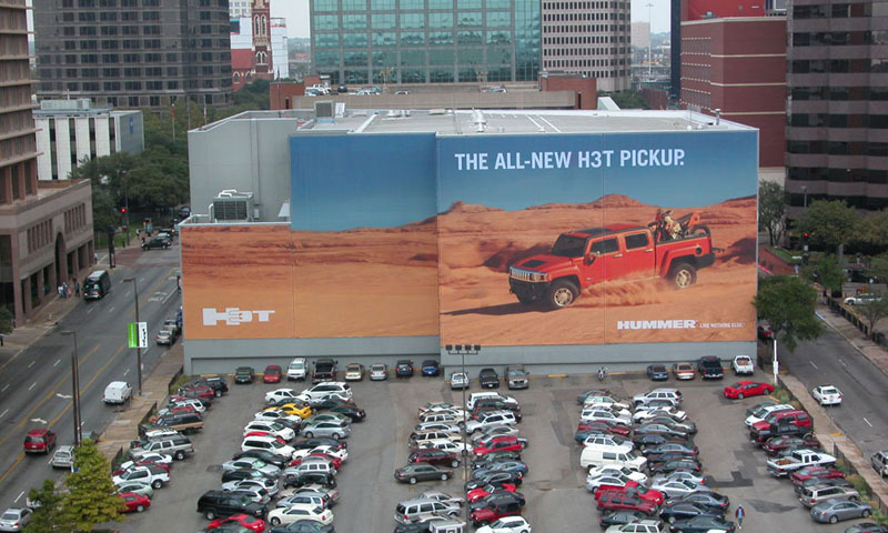 Billboard for the Dallas Area HUMMER dealers on the side of the Dallas YMCA.
