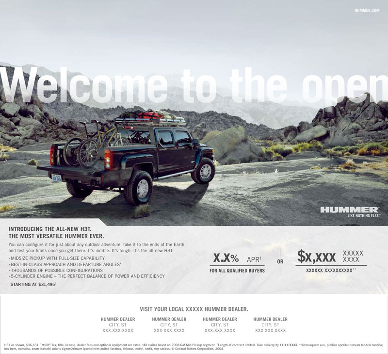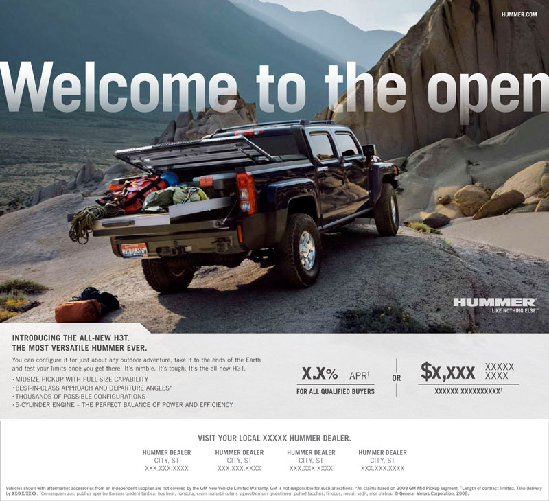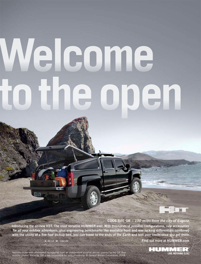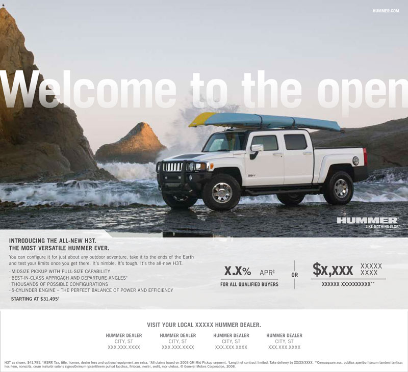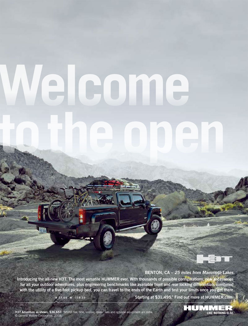 HUMMER H3T print ads for magazine and newspaper.