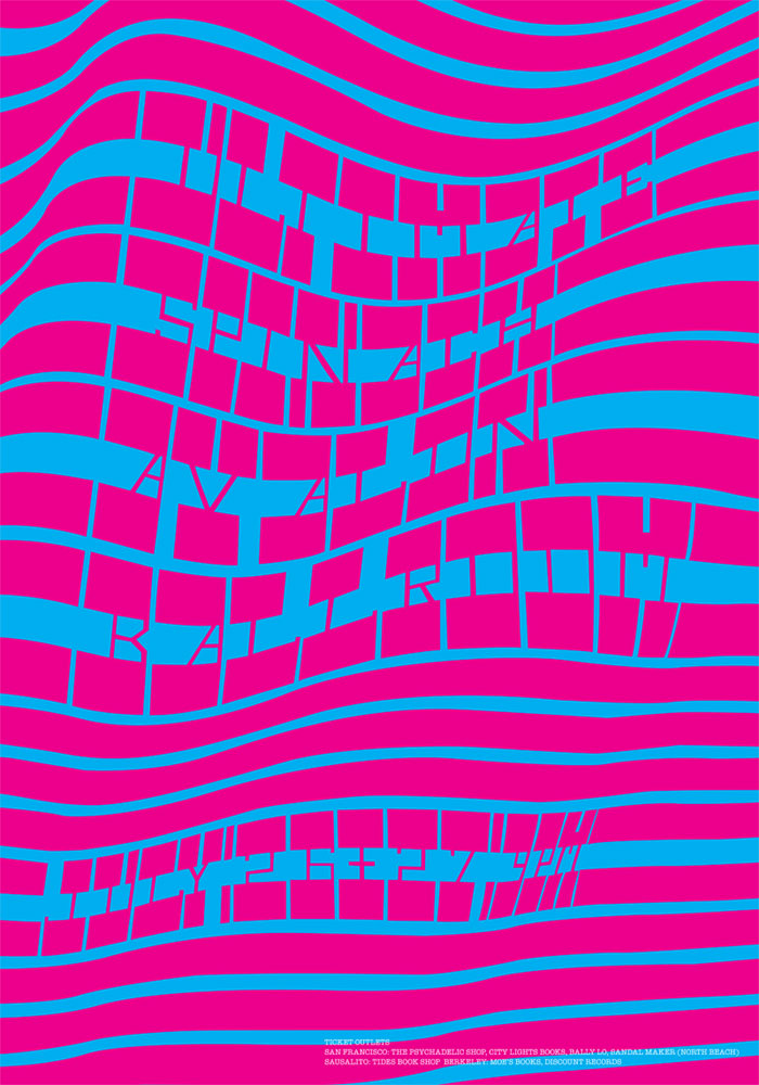 A single poster in the style of the 1970s psychedelic poster design movement in California; based off of Victor Moscoso and other contemporaries.